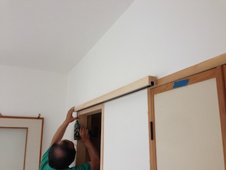 建具職人さんが、建具の調整を行い備え付けを行っていきます。