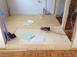 今日から水回り部分の床下地組み立て作業が開始されました。