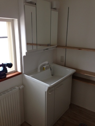 2階部分の給排水衛生設備工事の洗面化粧台設置を行いました。