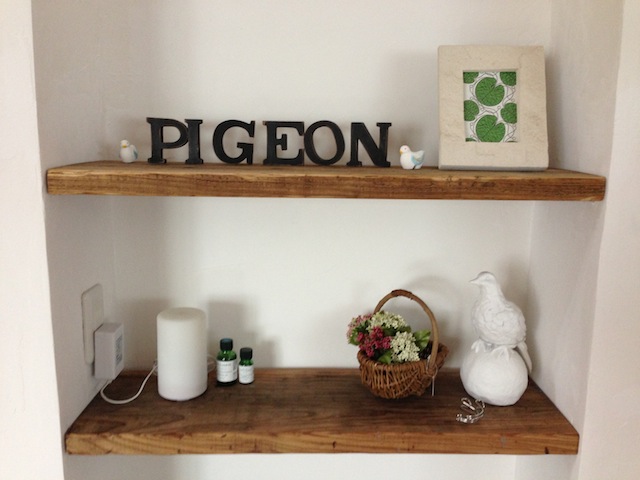 飾り棚、小物が素敵です。PIGEONは“鳩”を意味して、鳩は平和の象徴です。