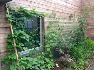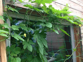 毎日成長を見るのが楽しみです。グリーンカーテンの密度も濃くなってきました。