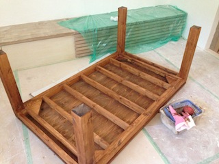 7月18日セルフビルドお疲れ様です!ダイニングテーブルの塗装作業を行いました。奇麗に塗装されています。流石です。セルフビルドを継続して行くと自分達の中の作業ルールが確立されてきます。テーブル横のカゴに作業ルールの確立が確認できます。塗装道具が一色が準備されています。設備の仕上げ工事が進んでいます。給排水衛生設備は、器具の取り付けが完了し水も出る様になりました。心配されていた水圧も問題ありませんでした。2階洗面で勢い良く水がでています。電気仕上げ工事は大詰めです。分電盤作業が進んでいます。