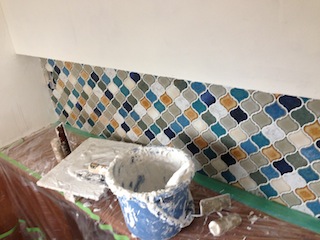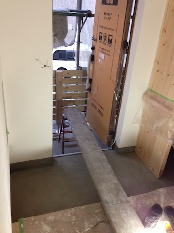 タイル工事と玄関モルタル工事が完了していました。