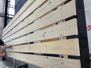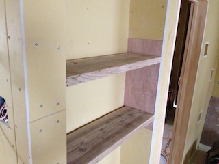 リビングの杉の足場板の棚です。