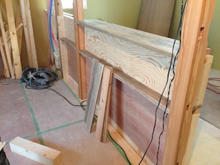 1階ではキッチン部分の造作を棟梁が進めています。