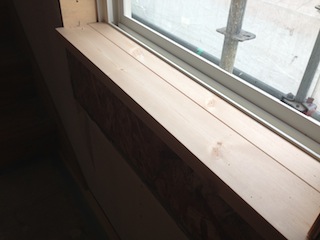 窓台に使用したのは、床材と同様のパインフローリングです。