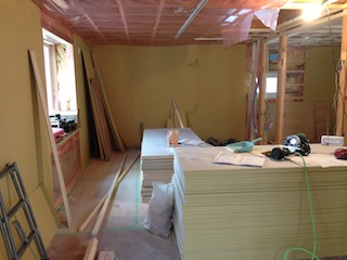 室内では石膏ボード貼りが始まりました。
