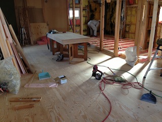 今日行った作業は、床フローリングの下地となる