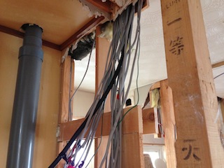 分電盤部分を撮影してきました。凄い数の電線です。