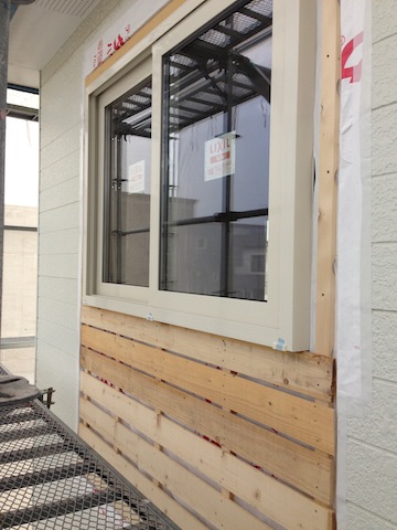 サッシ廻りの防水工事が終わったので、外壁の下地となる木下地調整を行いました。
