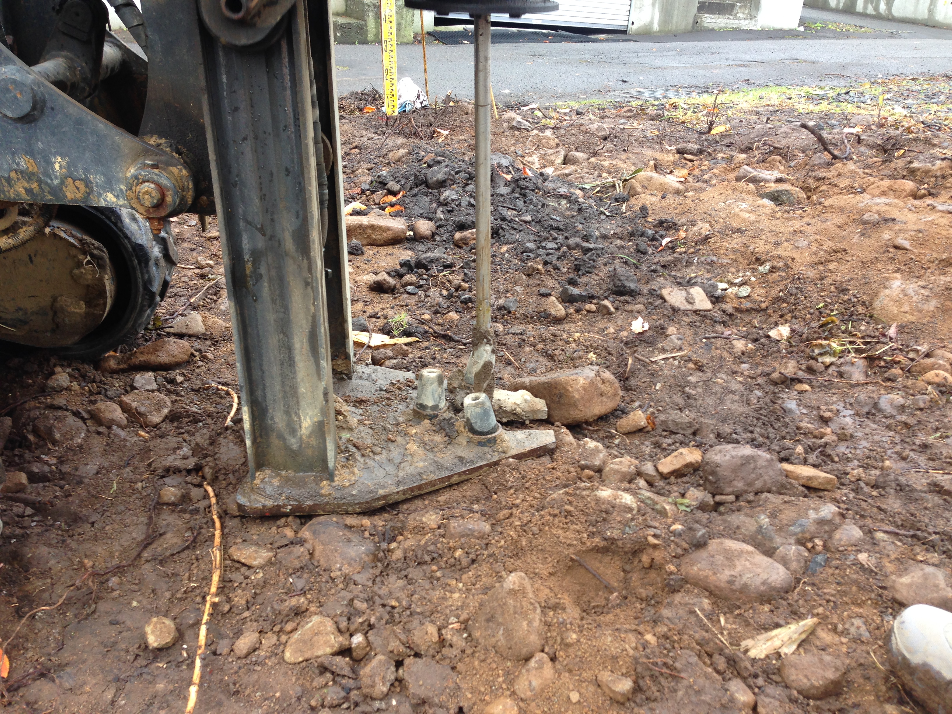 今日は地盤調査を行いました。測定点は建物の4角と中央部分です。